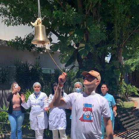 “É uma felicidade imensa tocar o sino, principalmente pela minha mãe, que senti mais do que o meu. Longe de mim, eu sem poder vê-la praticamente o tratamento todo. Quando chegava em casa, no outro dia voltava para o hospital com algum problema, alguma bactéria e não conseguia ter contato com a minha mãe. Agora tenho que cumprir promessas com meu pai e família e daqui para frente só melhorar, viver, cuidar mais de mim e valorizar mais as pessoas”, relembrou o adolescente.