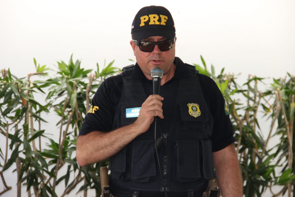 PRF Lisboa Júnior durante ação “Policiais Contra o Câncer Infantil” na Santa Casa Farol