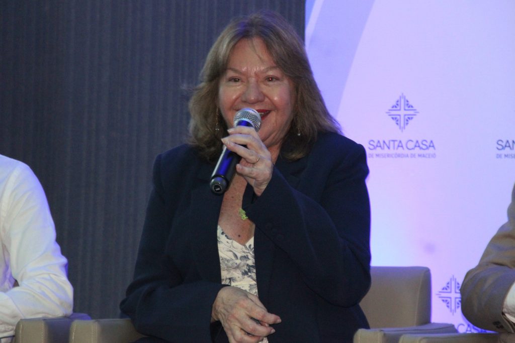 A cardiologista Alayde Rivera, gerente de Ensino e Pesquisa da Santa Casa de Maceió, durante lançamento do livro