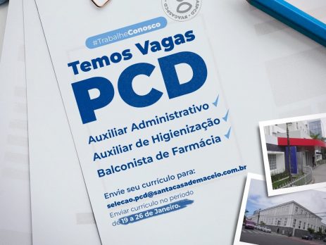Gestão de Pessoas recebem currículos, via email, até 26 de janeiro Valorizando a diversidade e acreditando no potencial de cada indivíduo, a Santa Casa de Maceió abriu vagas PcD para auxiliar administrativo, auxiliar de higienização e balconista de farmácia. As oportunidades são para contratação imediata e banco de reserva. Os interessados têm até o dia 26 de janeiro para enviar seus currículos para o e-mail da Gestão de Pessoas do hospital, no endereço eletrônico [email protected] A instituição, que possui quase 3 mil [...]